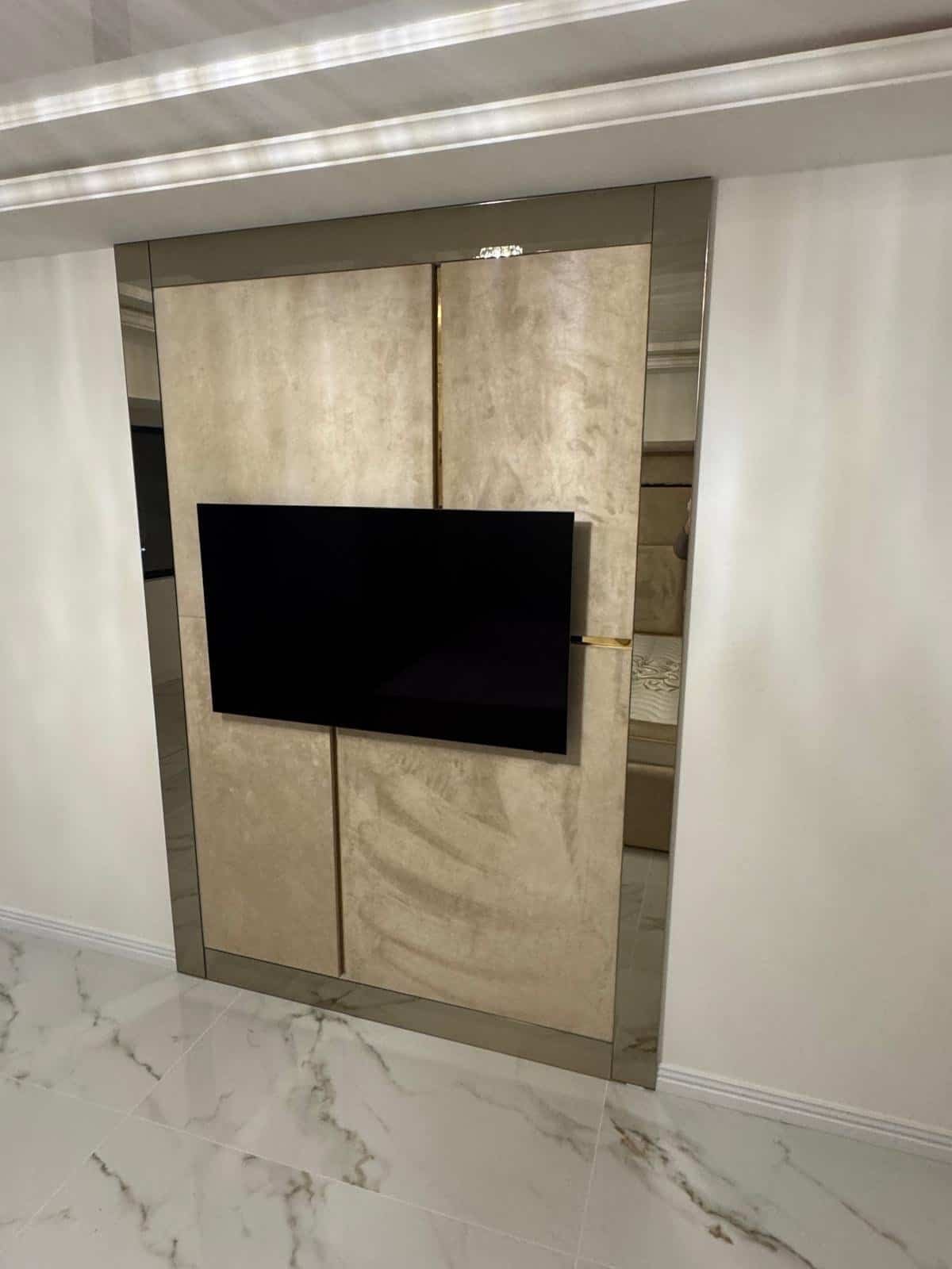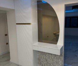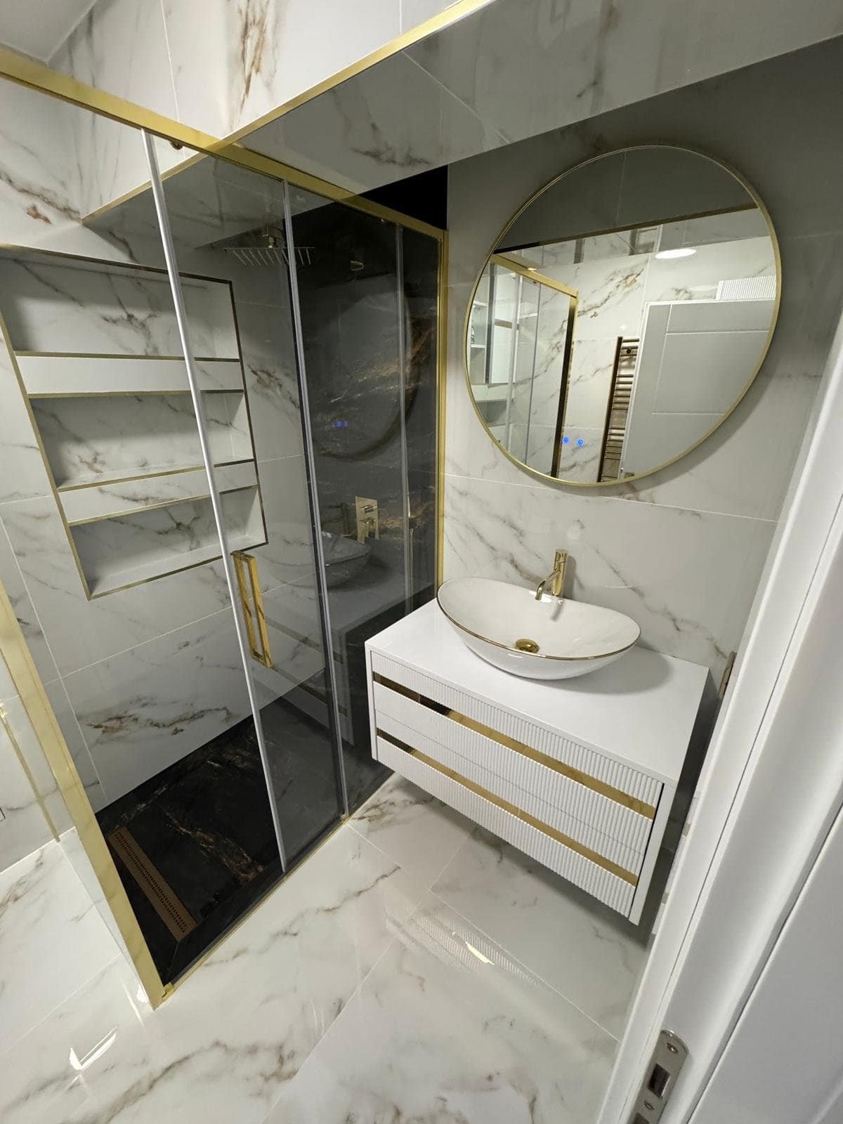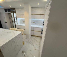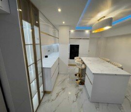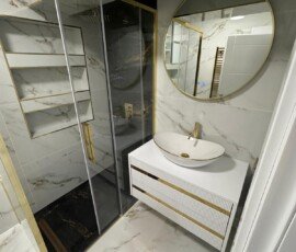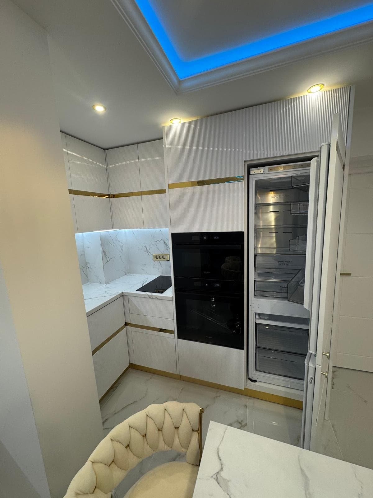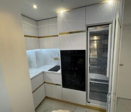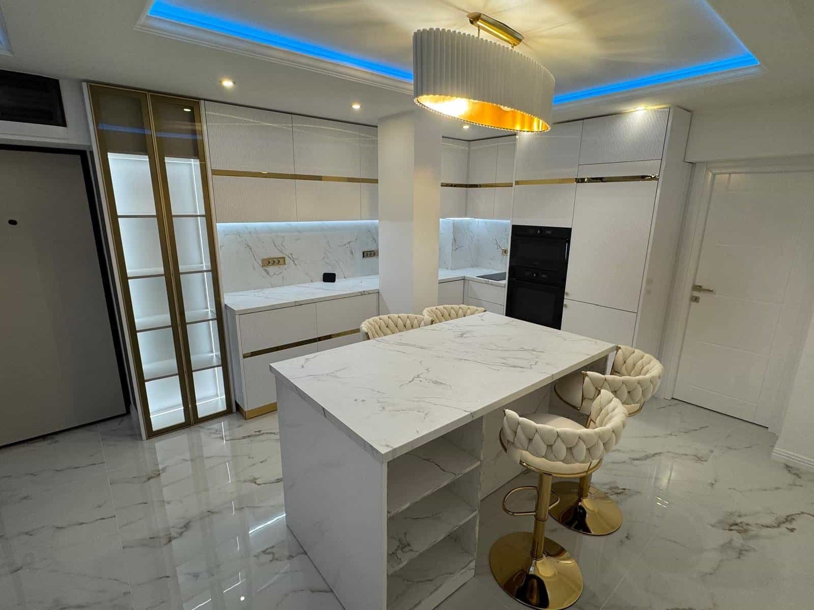 Mobilierul este executat la centimetrul perfect, gandit in cele mai mici detalii pentru impact vizual si functionalitate maxima. Fiecare piesa este personalizata, cu elemente premium si accente de auriu care transforma spatiul intr-un apartament elegant si eficient.